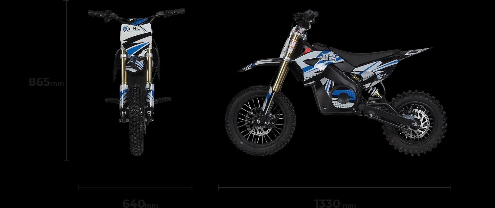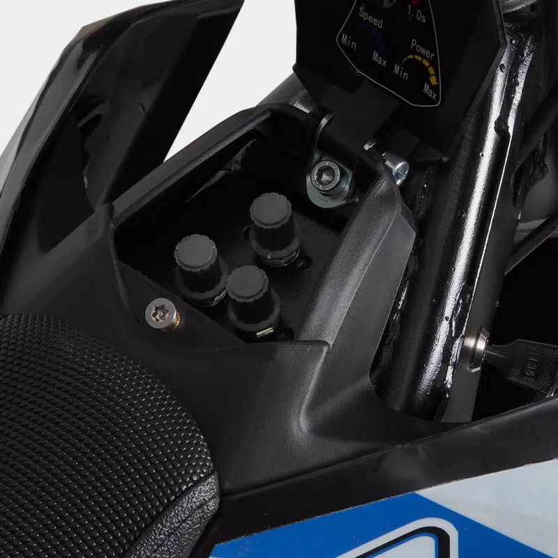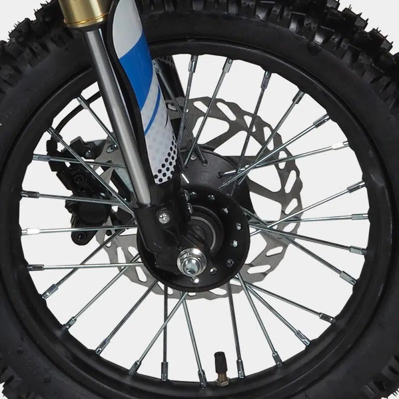 Model crossa dla dzieci występuje w dwóch wersjach, z oponami o wielkości 12/10 cali oraz 14/12 cali. Także w zależności od wygody lub zaawansowania jazdy dziecka, można wybrać odpowiednią dla niego opcję. W crossie elektrycznym znajdują się hamulce tarczowe, hydrauliczne zawieszenie oraz amortyzatory.
